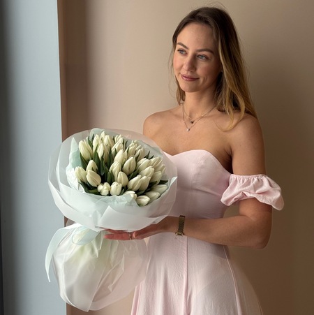 Состав: Тюльпаны- 35шт., Лента, Упаковка